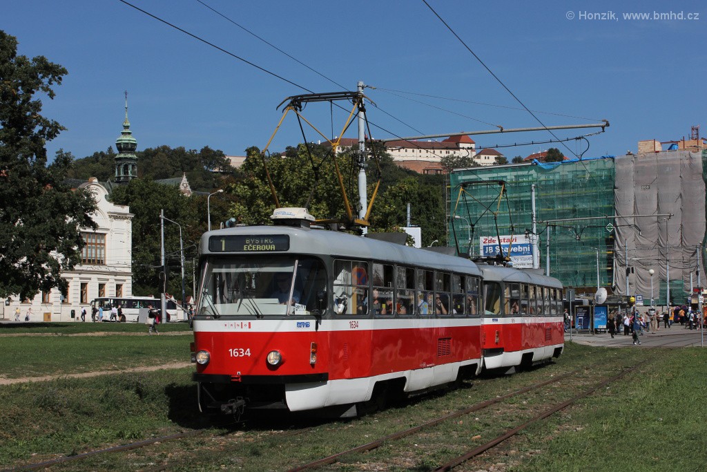 Fotografie ČKD Tatra T3G 1634 DPMB | ČKD Tatra T3G 1616 DPMB | Brno-Staré Brno, Veletržní | Fotogalerie BMHD