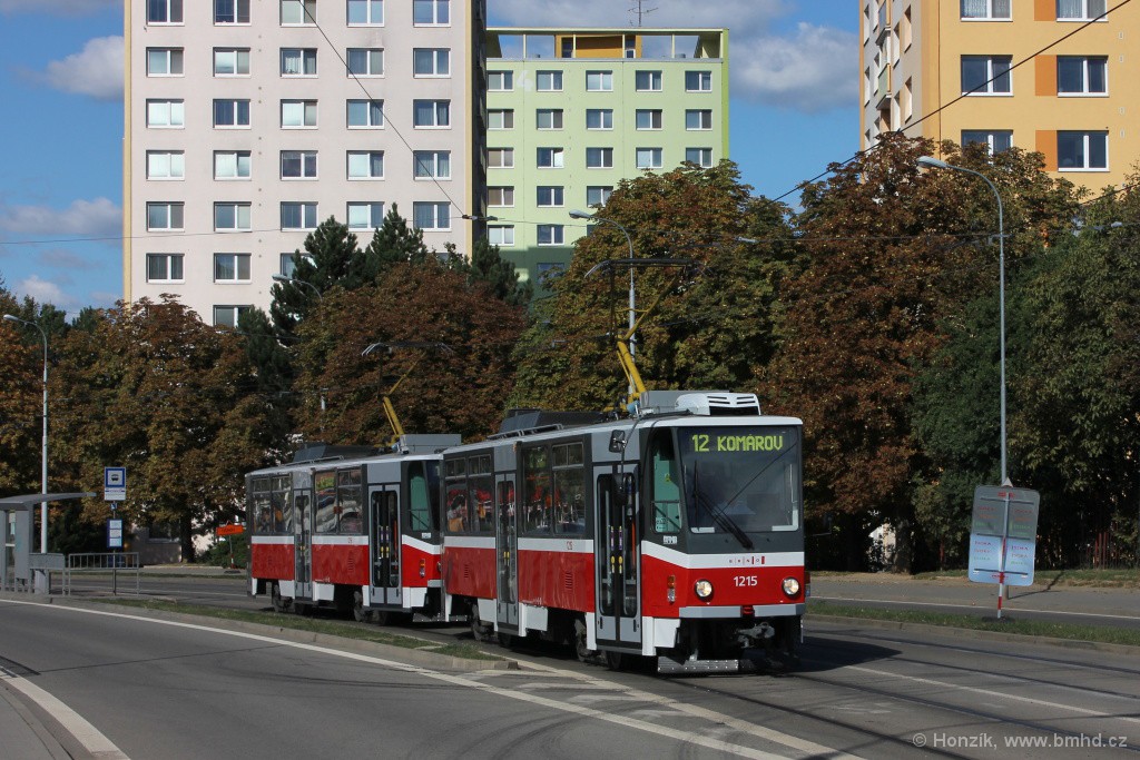 Souprava T6A5 1215+1216 asi měsíc po provedené GO již s klimatizací kabiny řidiče Konvekta KL20.