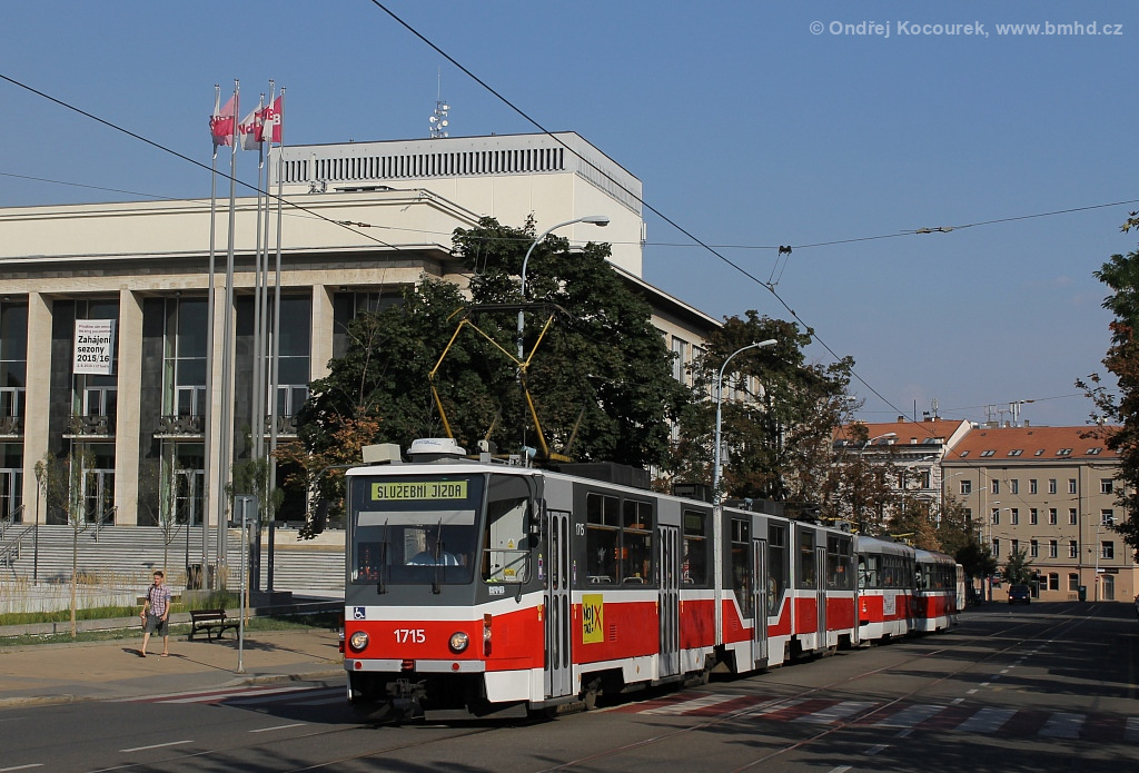 Fotografie ČKD Tatra KT8D5R.N2 1715 DPMB | Pragoimex T3R.EV 1569/II DPMB | Pragoimex T3R.EV 1560/II DPMB | Brno-střed, Rooseveltova | Fotogalerie BMHD
