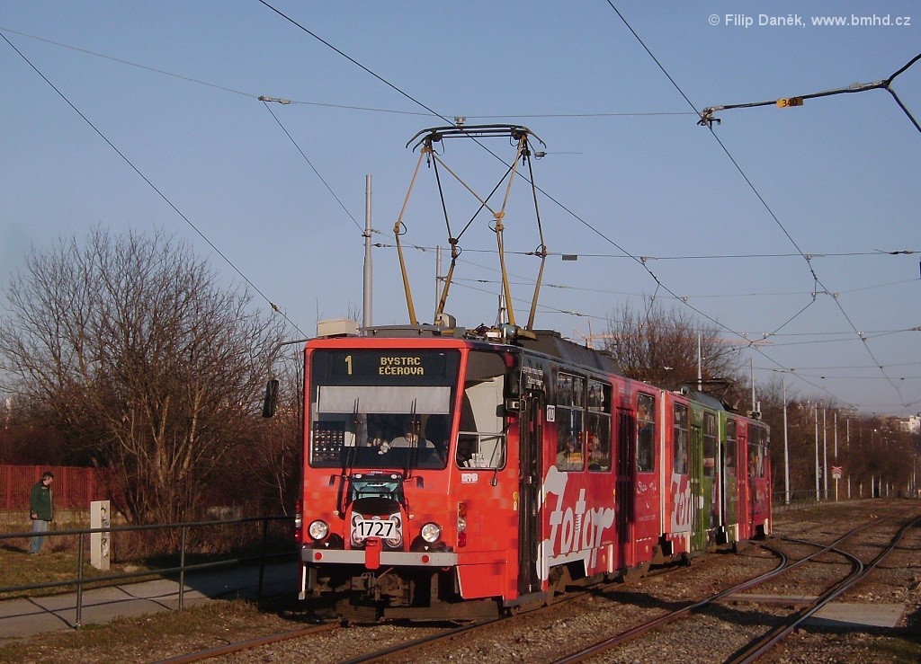 Fotografie ČKD Tatra KT8D5SU 1727 DPMB | Brno-Komín, Kníničská | Fotogalerie BMHD