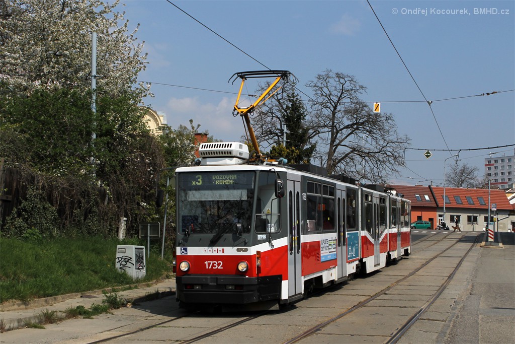 Fotografie ČKD Tatra KT8D5N 1732 DPMB | Brno-Žabovřesky, Rosického náměstí | Fotogalerie BMHD