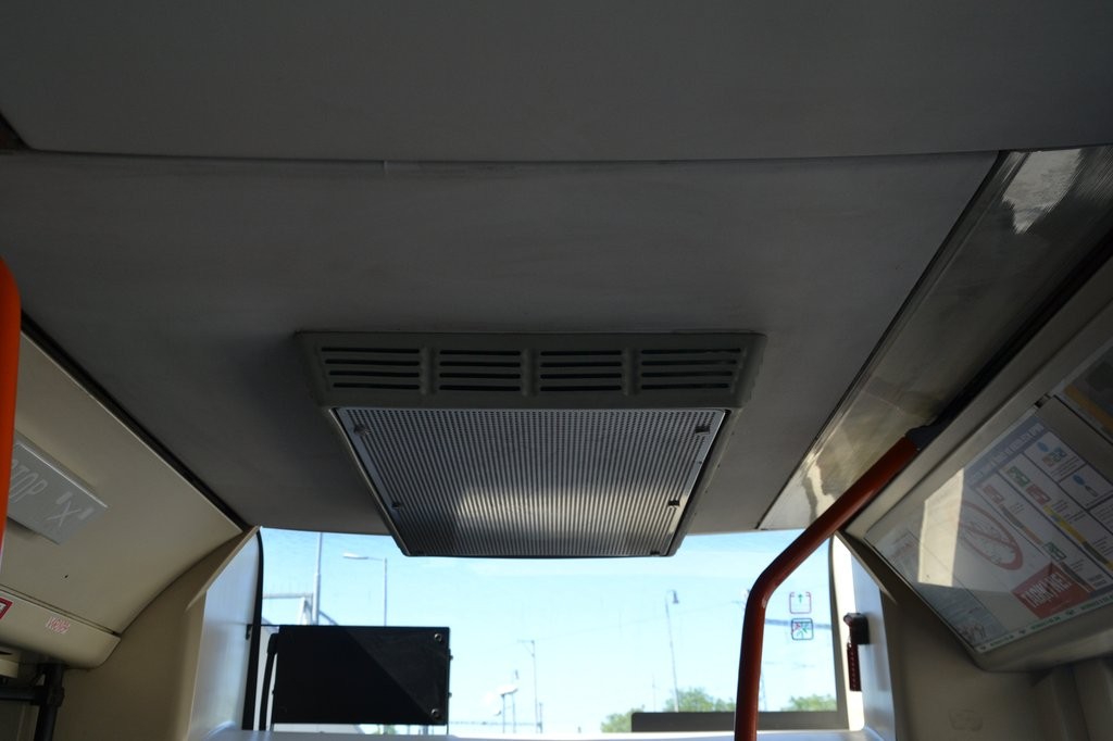výdech zadní jednotky klimatizace salónu Spheros Citysphere, která byla zkušebně instalována do Citelisu 7651