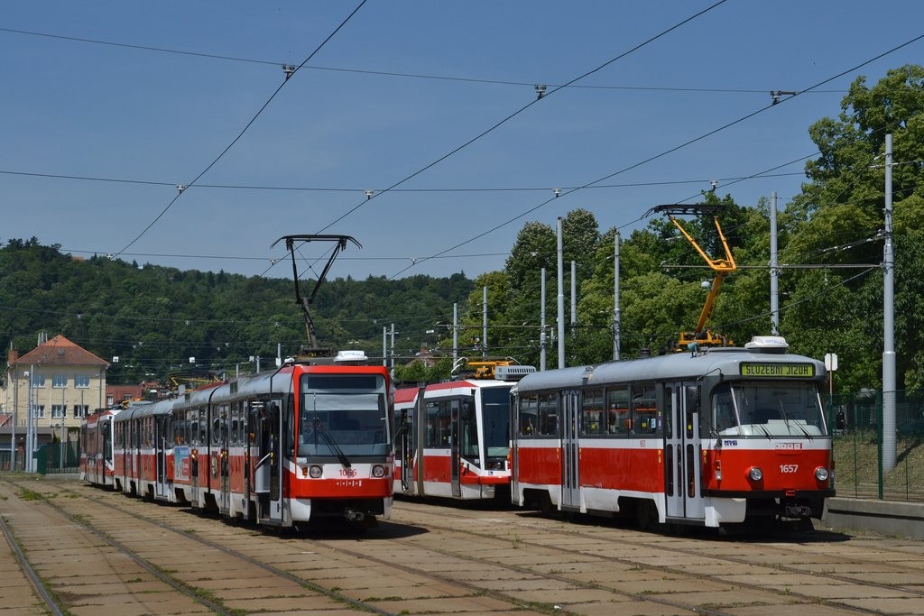 Fotografie ČKD Tatra K2R 1066 DPMB | Pragoimex T3R.PV 1657/II DPMB | Brno-Pisárky, vozovna Pisárky | Fotogalerie BMHD