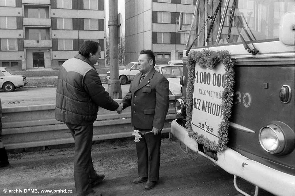 Gratulace řidiči trolejbusu za ujetí 1 miliónu km bez nehody.