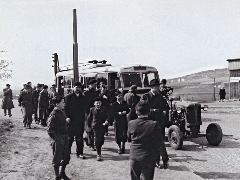 Přetah trolejbusu 6Tr pomocí traktoru.