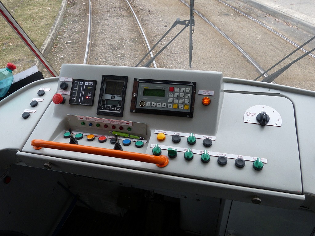 palubní deska vozu K2 1122 po poslední VP dokončené počátkem roku 2013. Vůz obdržel novou palubní desku, s čímž souvisí i změna některých měřících přístrojů nebo ovladačů (nový ampérmetr a voltmetr vlastní výroby, digitální zobrazovací jednotka tachografu, doplnění tlačítka světelné houkačky apod.)