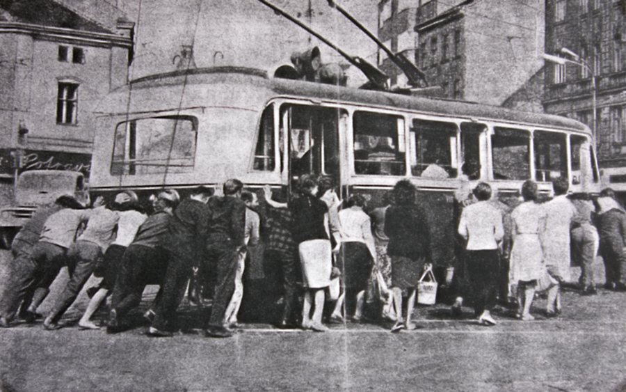 Křižovatka pod viaduktem bývala (a dosud je) problémovým místem. Někdy se přihodilo, že trolejbus po vypadení sběračů na křížení s tramvají zůstal stát pod odizolovaným úsekem, a tak jej kousek museli potlačit cestující.