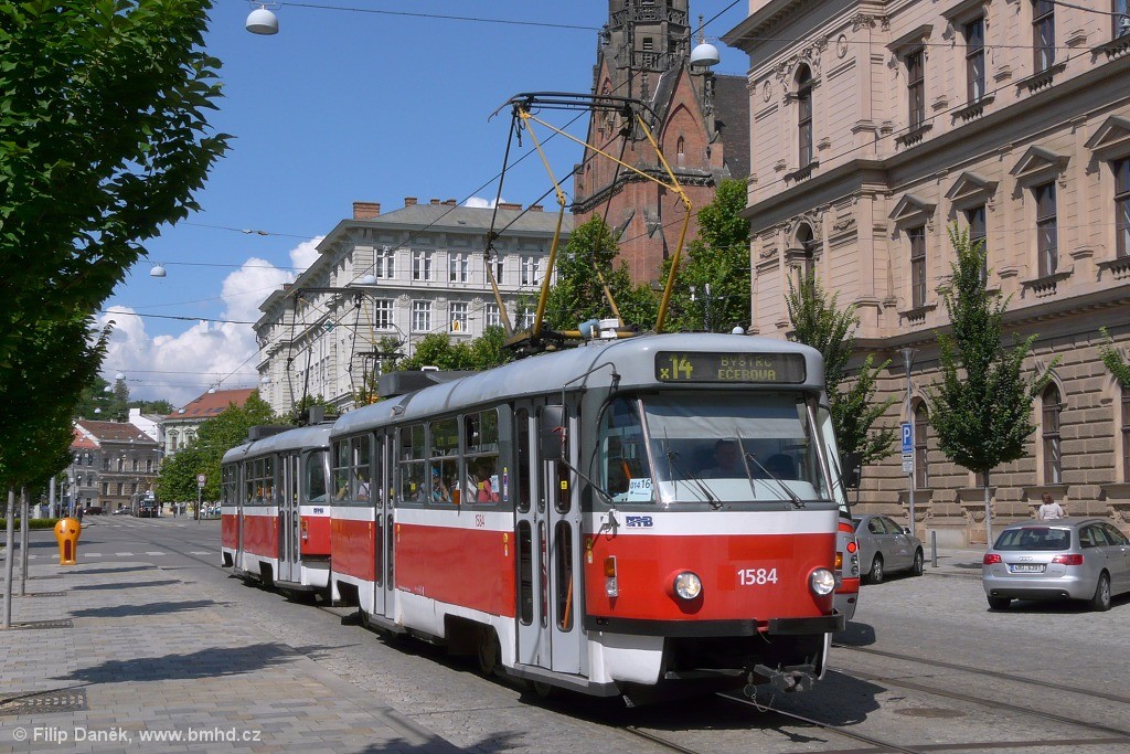 Fotografie ČKD Tatra T3M 1584 DPMB | ČKD Tatra T3M 1592 DPMB | Brno-střed, Joštova | Fotogalerie BMHD