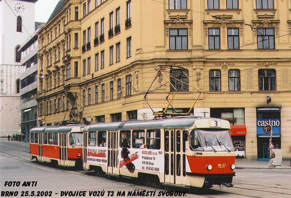 Fotografie ČKD Tatra T3 1537 DPMB | ČKD Tatra T3 1548 DPMB | Brno-střed, náměstí Svobody | Fotogalerie BMHD