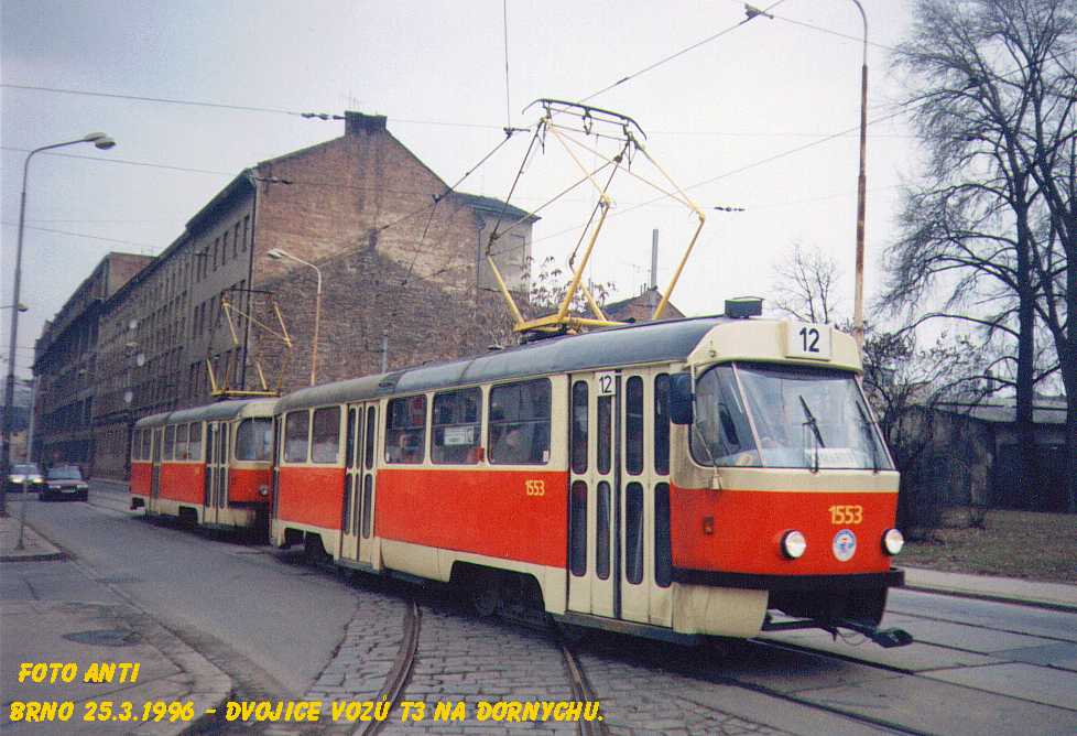 Fotografie ČKD Tatra T3 1553 DPMB | ČKD Tatra T3 1554 DPMB | Brno-Trnitá, Dornych | Fotogalerie BMHD
