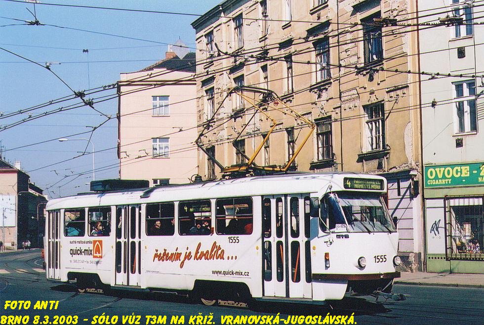 Fotografie ČKD Tatra T3M 1555 DPMB | Brno-Zábrdovice, Vranovská | Fotogalerie BMHD