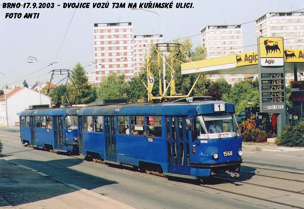 Fotografie ČKD Tatra T3M 1568 DPMB | ČKD Tatra T3M 1566 DPMB | Brno-Královo Pole, Kuřimská | Fotogalerie BMHD
