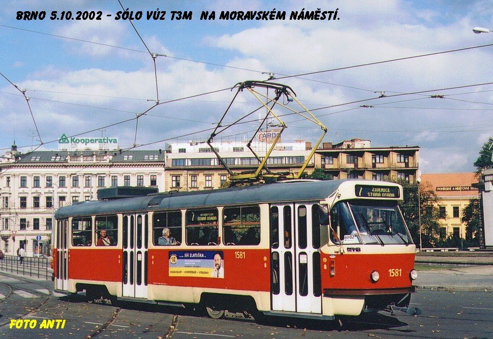 Fotografie ČKD Tatra T3M 1581/II DPMB | Brno-střed, Moravské náměstí | Fotogalerie BMHD