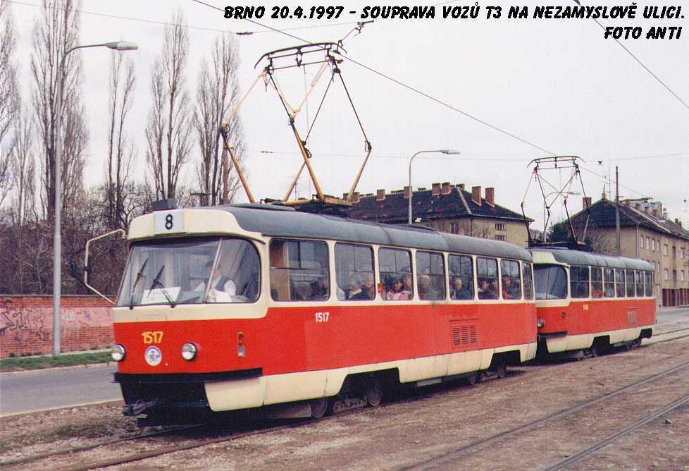 Fotografie ČKD Tatra T3 1517 DPMB | Brno-Židenice, Nezamyslova | Fotogalerie BMHD