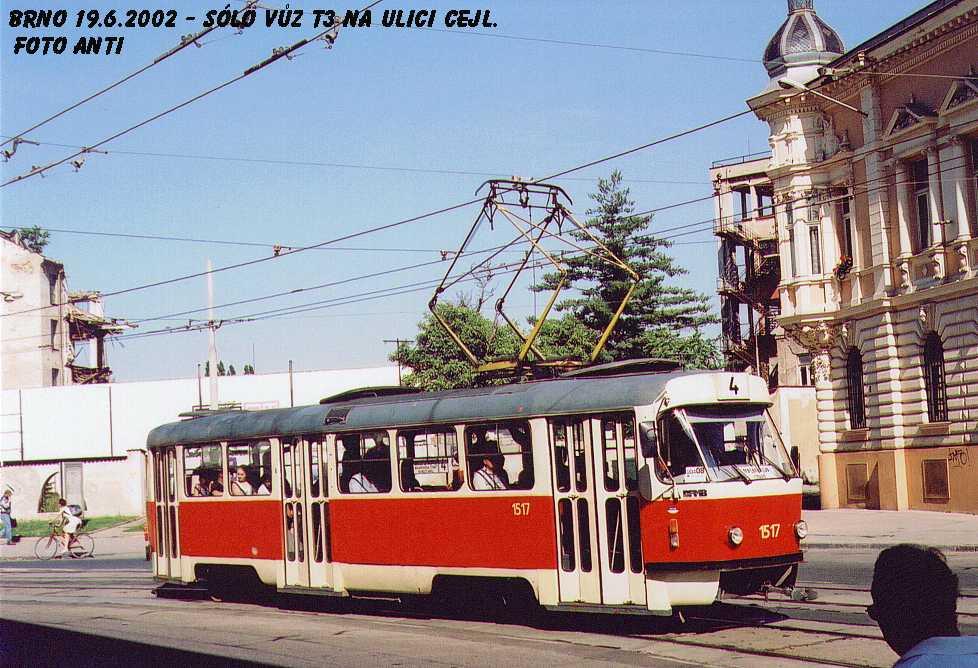 Fotografie ČKD Tatra T3 1517 DPMB | Brno-Zábrdovice, Cejl | Fotogalerie BMHD