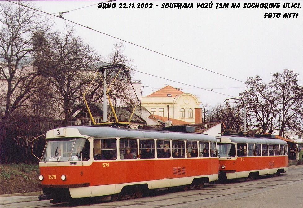 Fotografie ČKD Tatra T3M 1579 DPMB | ČKD Tatra T3M 1572 DPMB | Brno-Žabovřesky, Sochorova | Fotogalerie BMHD