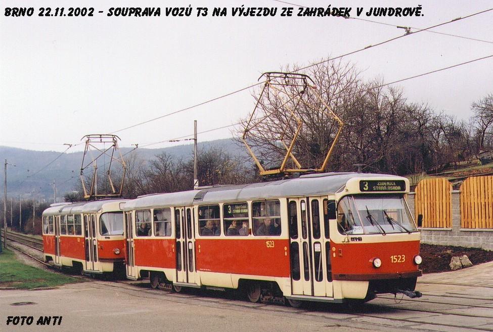 Fotografie ČKD Tatra T3 1523 DPMB | ČKD Tatra T3 1528 DPMB | Brno-Žabovřesky, Sochorova | Fotogalerie BMHD