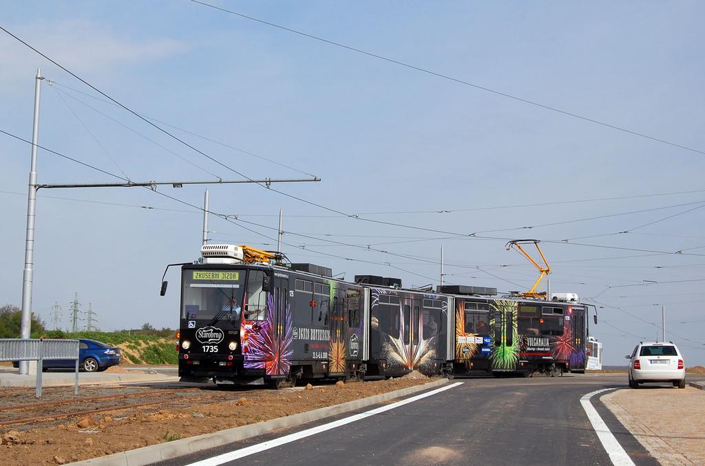 Zkušební profilové jízdy na nově vybudovaném úseku tramvajové trati v Králově Poli.