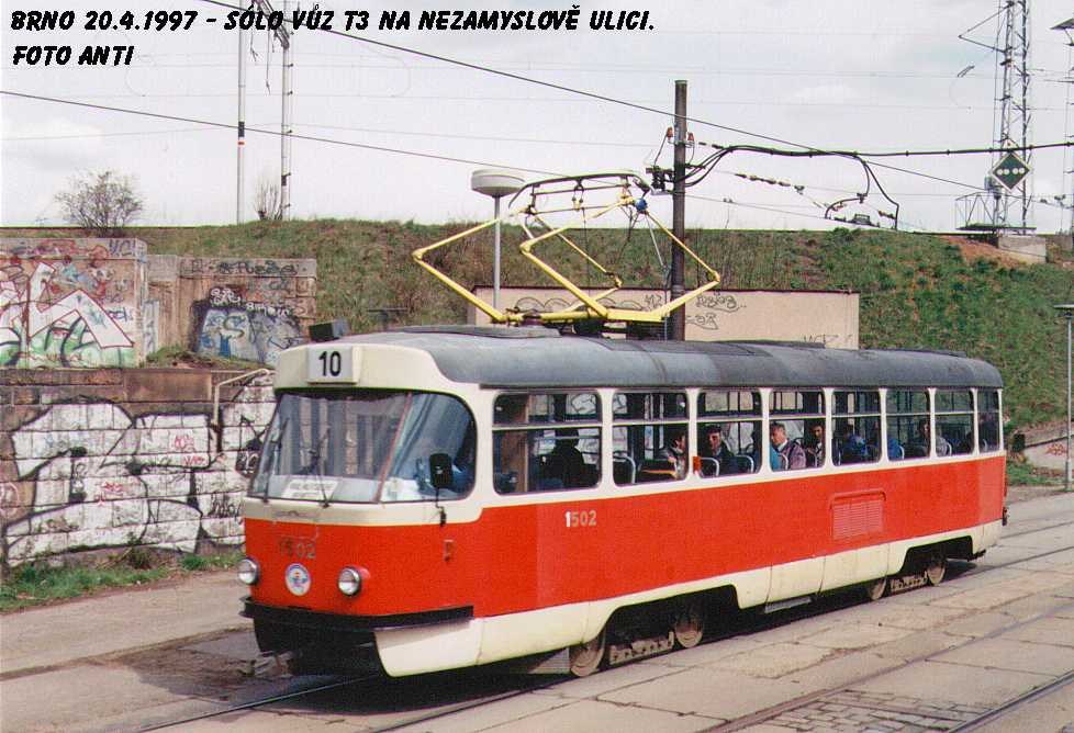 Fotografie ČKD Tatra T3 1502 DPMB | Brno-Židenice, Nezamyslova | Fotogalerie BMHD