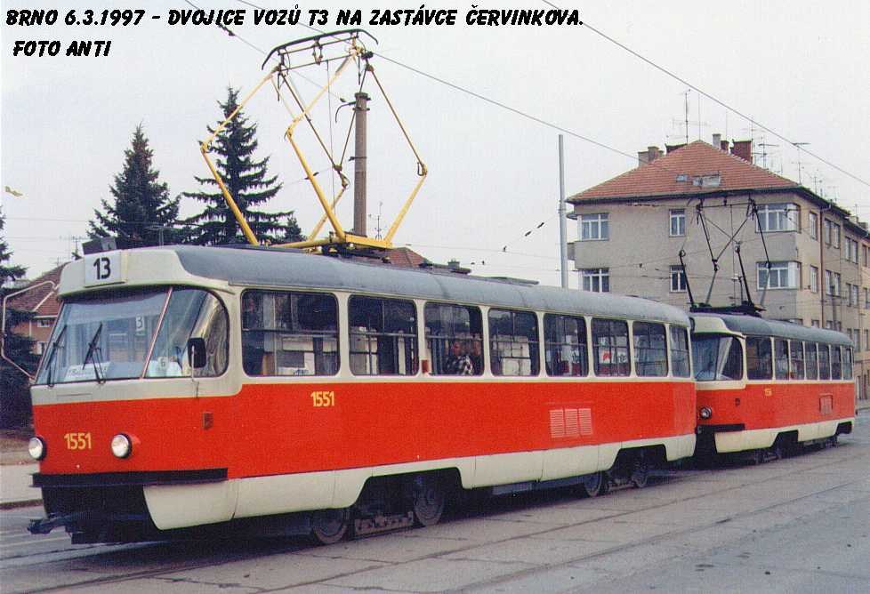 Fotografie ČKD Tatra T3 1551 DPMB | ČKD Tatra T3 1552 DPMB | Brno-Královo Pole, Purkyňova | Fotogalerie BMHD