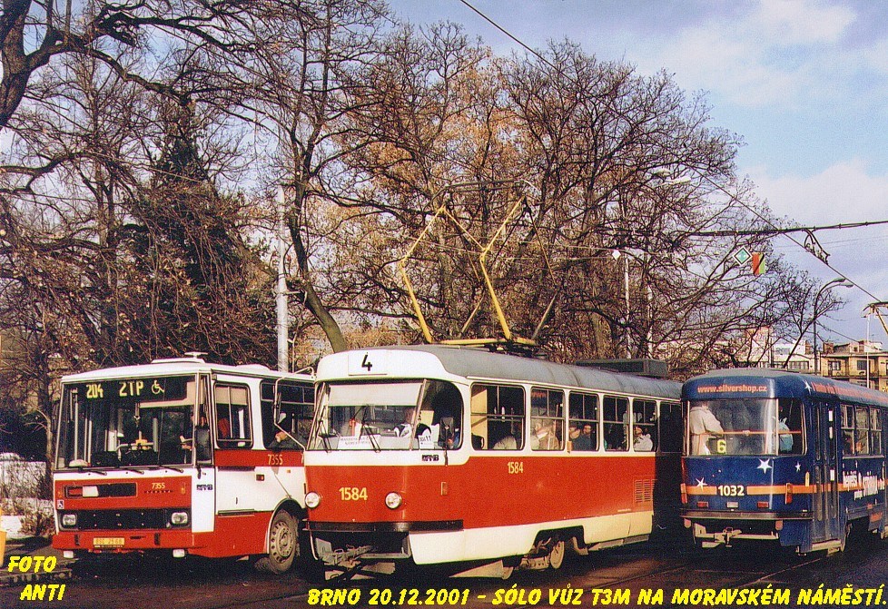 Fotografie ČKD Tatra K2P 1032 DPMB | ČKD Tatra T3M 1584 DPMB | Karosa B 732.1654 7355 DPMB | Brno-střed, Moravské náměstí | Fotogalerie BMHD
