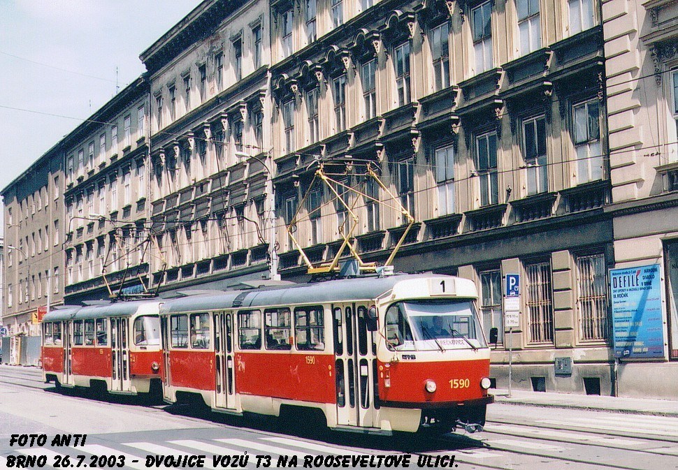 Fotografie ČKD Tatra T3 1590 DPMB | ČKD Tatra T3 1556 DPMB | Brno-střed, Roosveltova | Fotogalerie BMHD