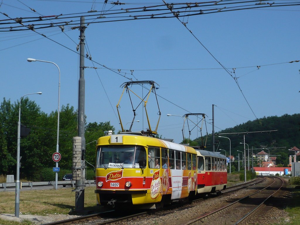 Fotografie ČKD Tatra T3 1497/II DPMB | ČKD Tatra T3 1599 DPMB | Brno-Komín, Kníničská | Fotogalerie BMHD