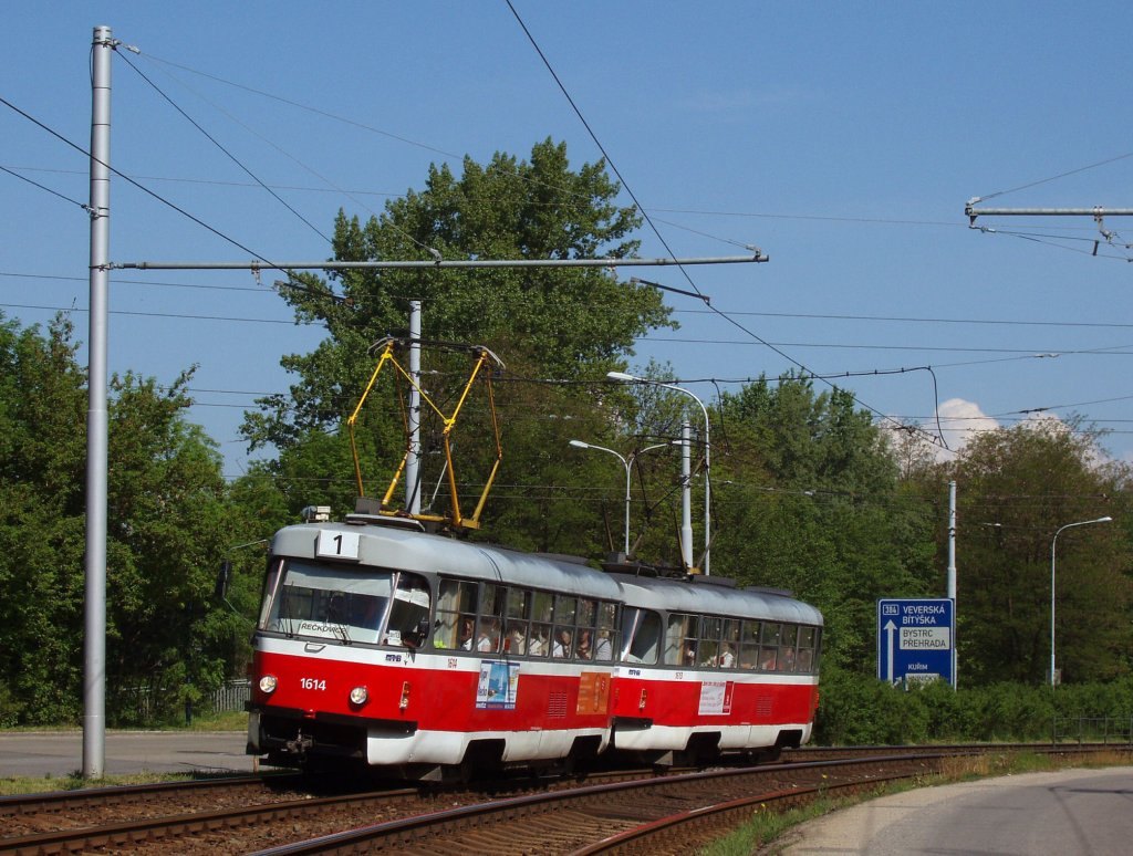 Fotografie ČKD Tatra T3G 1614 DPMB | ČKD Tatra T3G 1613 DPMB | Brno-Komín, Kníničská | Fotogalerie BMHD