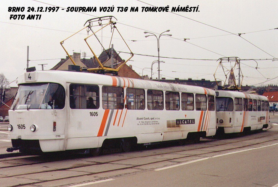 Fotografie ČKD Tatra T3G 1605 DPMB | ČKD Tatra T3G 1617 DPMB | Brno-Husovice, Tomkovo náměstí | Fotogalerie BMHD
