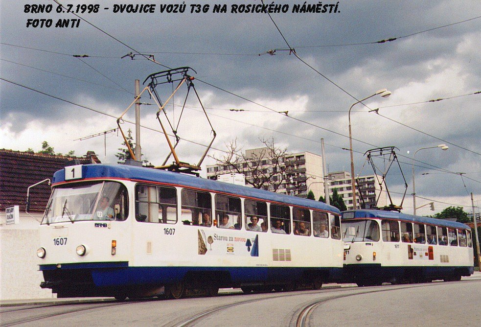 Fotografie ČKD Tatra T3G 1607 DPMB | ČKD Tatra T3G 1611 DPMB | Brno-Žabovřesky, Rosického náměstí | Fotogalerie BMHD