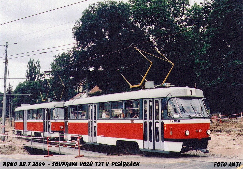 Fotografie ČKD Tatra T3T 1630 DPMB | ČKD Tatra T3T 1627 DPMB | Brno-Pisárky, Žabovřeská | Fotogalerie BMHD