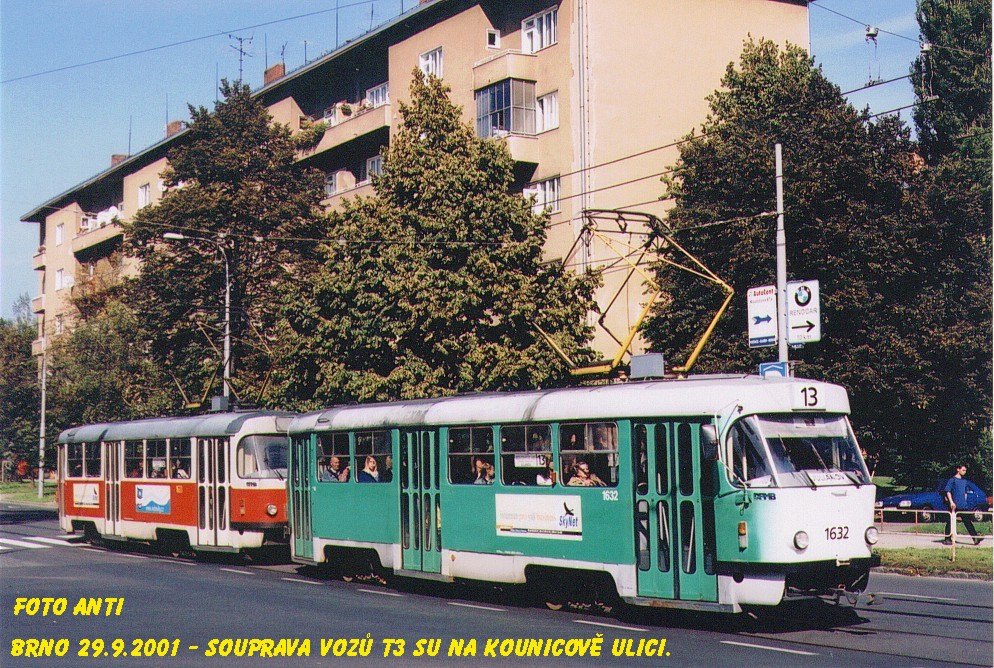 Fotografie ČKD Tatra T3SUCS 1632 DPMB | ČKD Tatra T3SUCS 1633 DPMB | Brno-Veveří, Kounicova | Fotogalerie BMHD