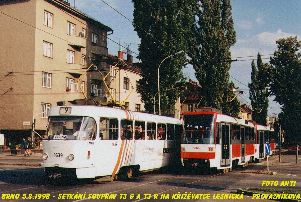 Fotografie ČKD Tatra T3G 1639 DPMB | ČKD DS T3R 1666 DPMB | Brno-Černá Pole, Lesnická | Fotogalerie BMHD