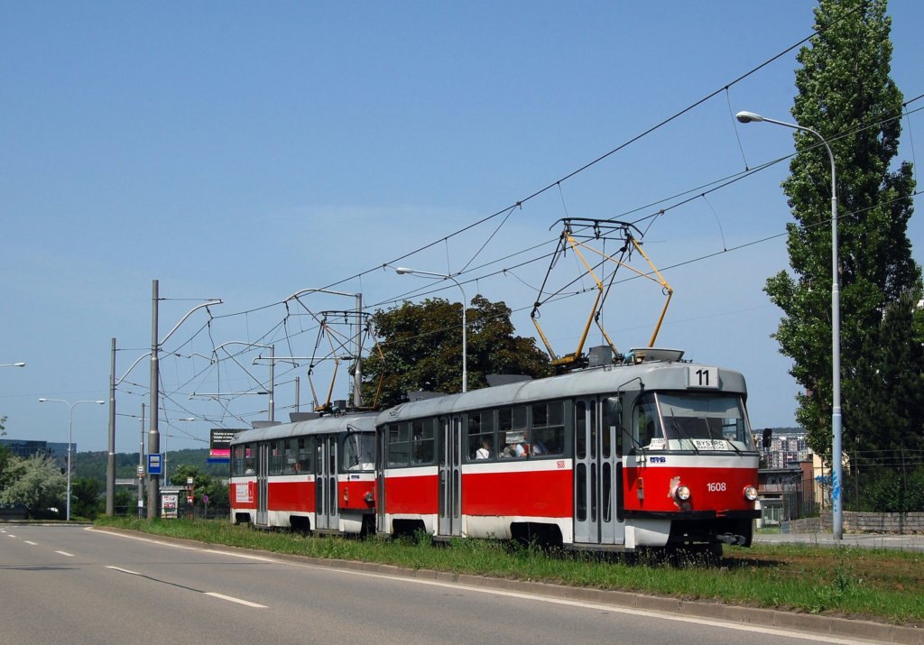 Fotografie ČKD Tatra T3G 1608 DPMB | ČKD Tatra T3G 1606 DPMB | Brno-Černá Pole, třída Generála Píky | Fotogalerie BMHD