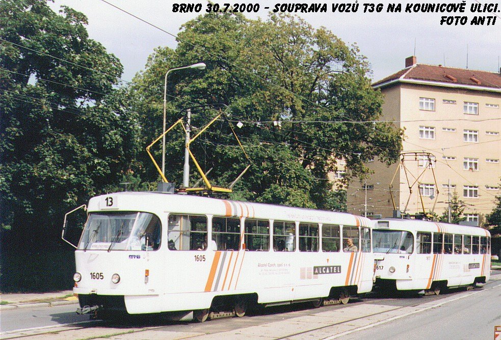 Fotografie ČKD Tatra T3G 1605 DPMB | ČKD Tatra T3G 1617 DPMB | Brno-Královo Pole, Kounicova | Fotogalerie BMHD