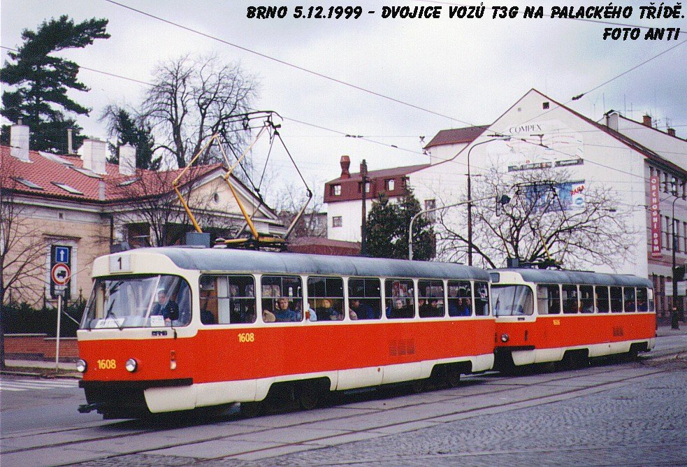 Fotografie ČKD Tatra T3G 1608 DPMB | ČKD Tatra T3G 1606 DPMB | Brno-Královo Pole, Palackého | Fotogalerie BMHD