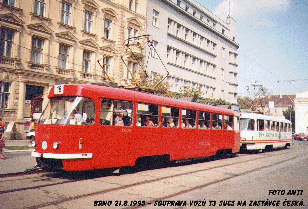 Fotografie ČKD Tatra T3SUCS 1609 DPMB | ČKD Tatra T3SUCS 1619 DPMB | Brno-střed, Joštova | Fotogalerie BMHD