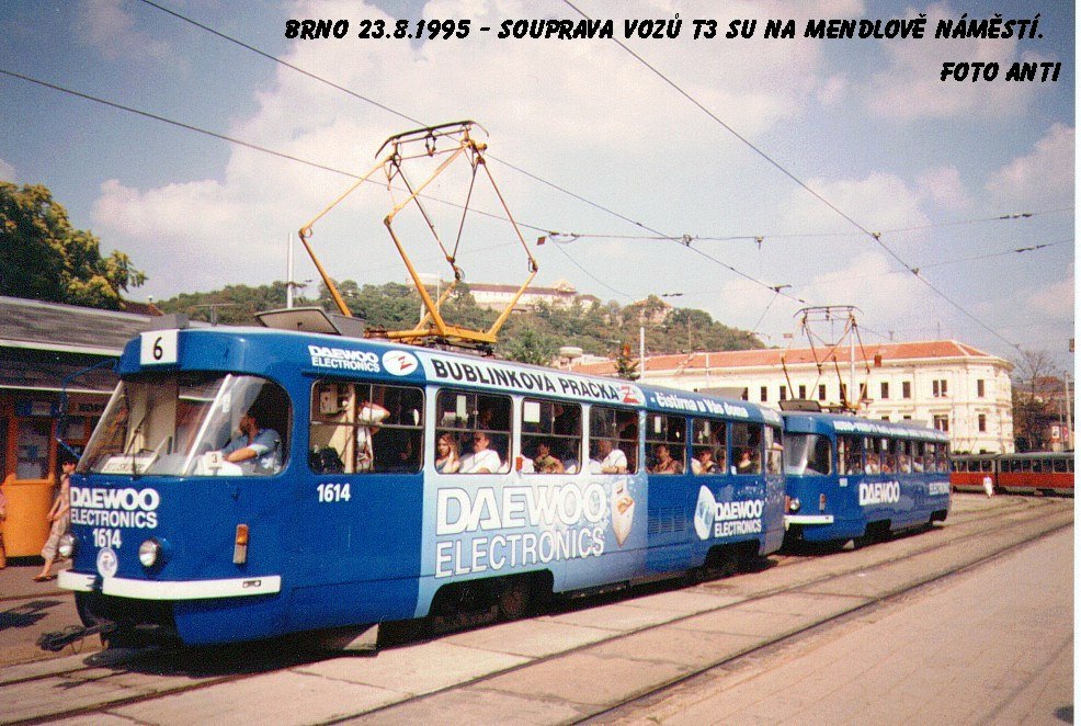 Fotografie ČKD Tatra T3SUCS 1614 DPMB | ČKD Tatra T3SUCS 1613 DPMB | Brno-Staré Brno, Mendlovo náměstí | Fotogalerie BMHD