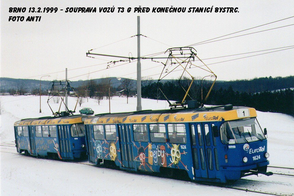 Fotografie ČKD Tatra T3SUCS 1624 DPMB | ČKD Tatra T3SUCS 1625 DPMB | Brno-Bystrc | Fotogalerie BMHD
