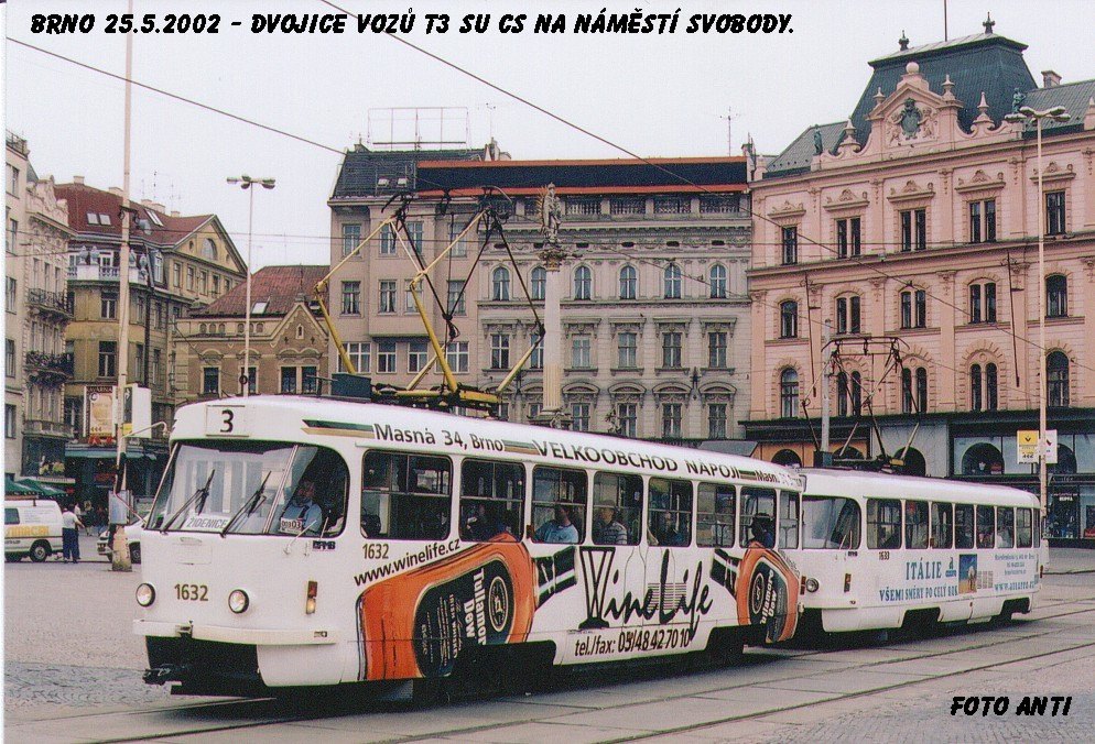 Fotografie ČKD Tatra T3SUCS 1632 DPMB | ČKD Tatra T3SUCS 1633 DPMB | Brno-střed, náměstí Svobody | Fotogalerie BMHD