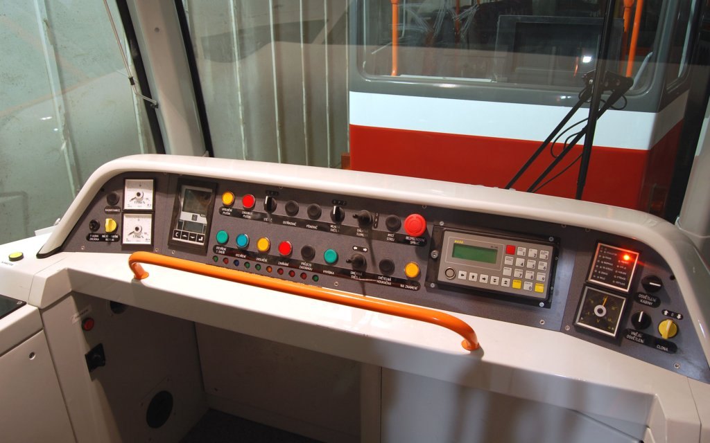 palubní deska tramvaje VarioLF dle vzoru 2008 (tlačítka Telemechanique)