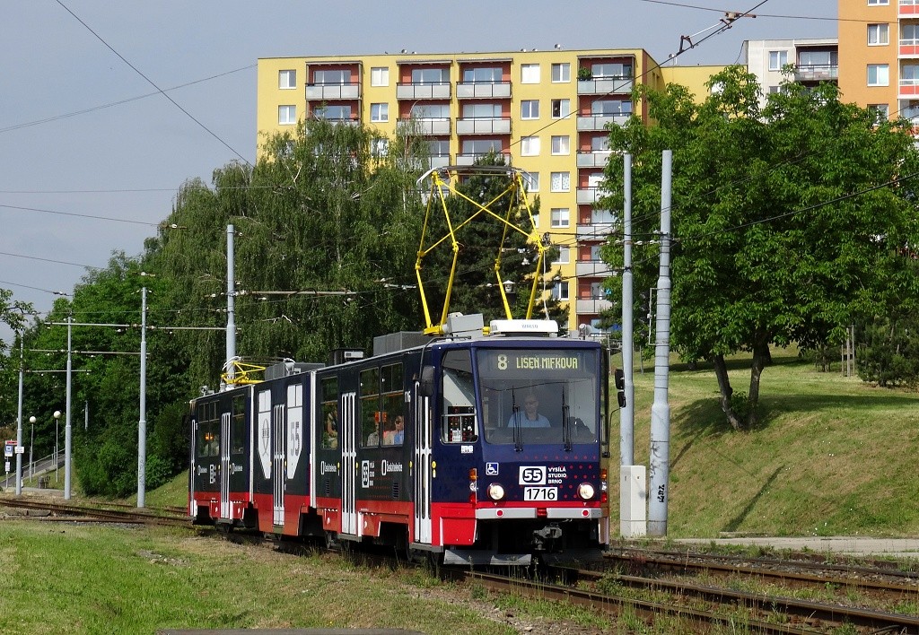 1716 s novou celovozovou reklamou "Česká televize - 55 let vysílání studia Brno".