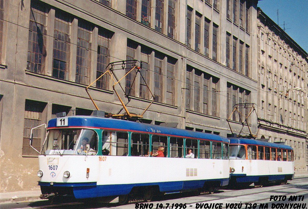 Fotografie ČKD Tatra T3G 1607 DPMB | ČKD Tatra T3G 1611 DPMB | Brno-Trnitá, Dornych | Fotogalerie BMHD