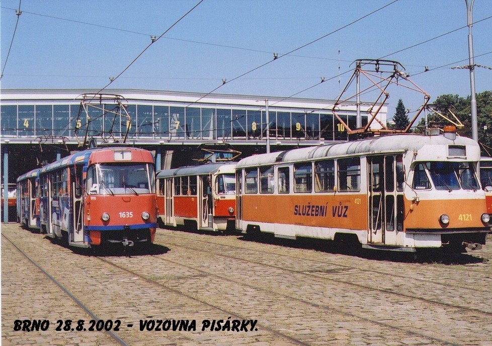 Fotografie ČKD Tatra T3G 1635 DPMB | Tatra T2 služební 4121 DPMB | Brno-Pisárky, vozovna Pisárky | Fotogalerie BMHD