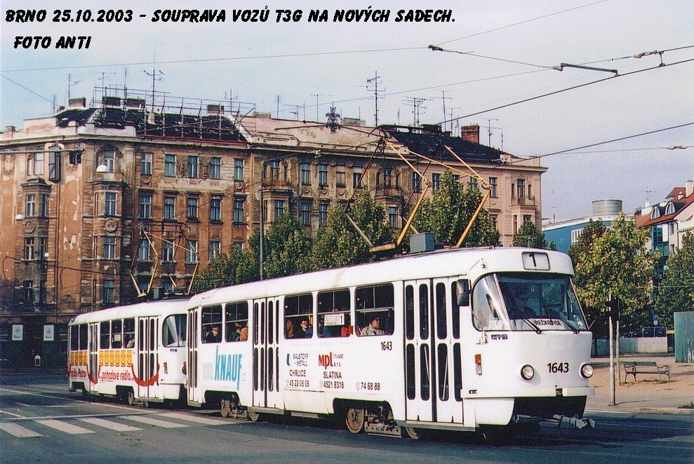 Fotografie ČKD Tatra T3G 1643 DPMB | ČKD Tatra T3G 1644 DPMB | Brno-Staré Brno, Hybešova | Fotogalerie BMHD