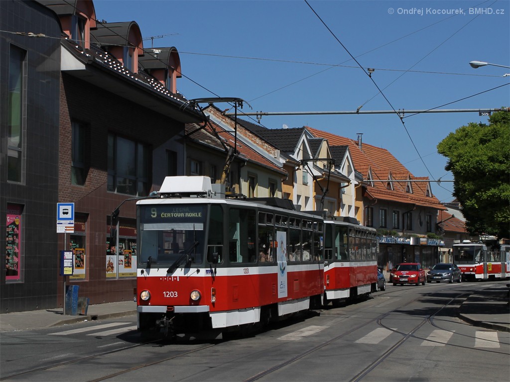 Fotografie ČKD DS T6A5 1203 DPMB | ČKD DS T6A5 1204 DPMB | Brno-Židenice, Táborská | Fotogalerie BMHD