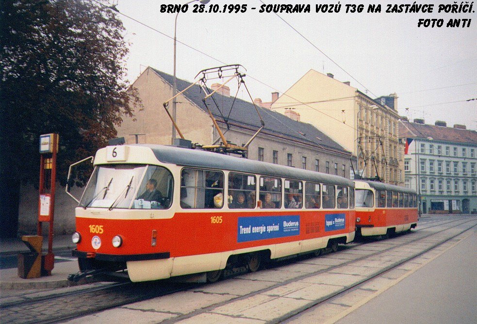 Fotografie ČKD Tatra T3G 1605 DPMB | Brno-Staré Brno, Křížová | Fotogalerie BMHD