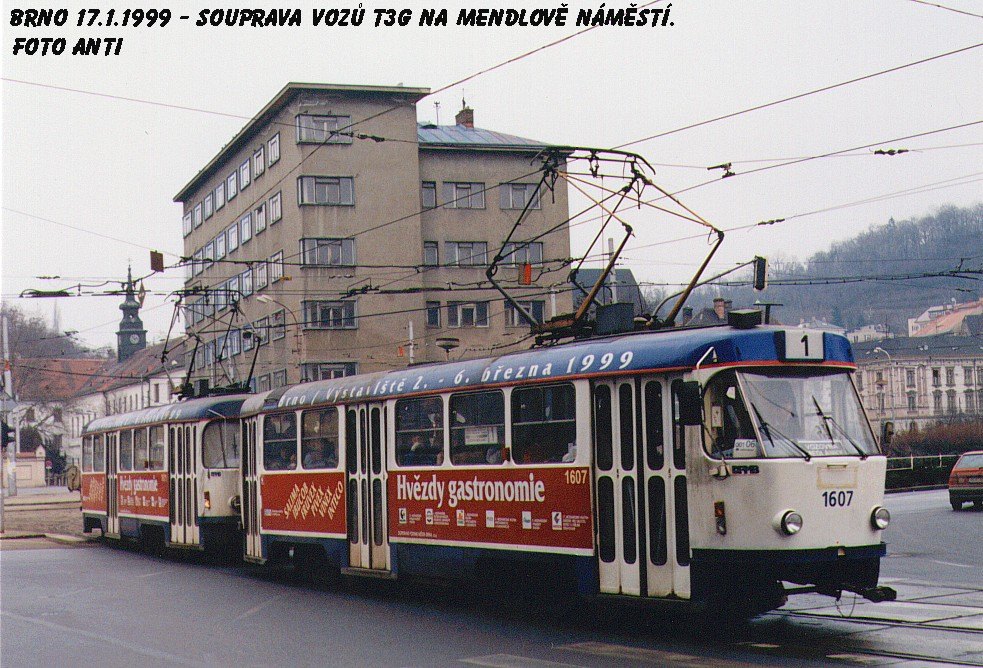 Fotografie ČKD Tatra T3G 1607 DPMB | ČKD Tatra T3G 1611 DPMB | Brno-Staré Brno, Mendlovo náměstí | Fotogalerie BMHD
