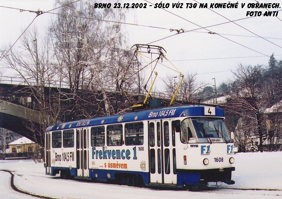 Fotografie ČKD Tatra T3G 1608 DPMB | Brno-Maloměřice, Obřanská | Fotogalerie BMHD