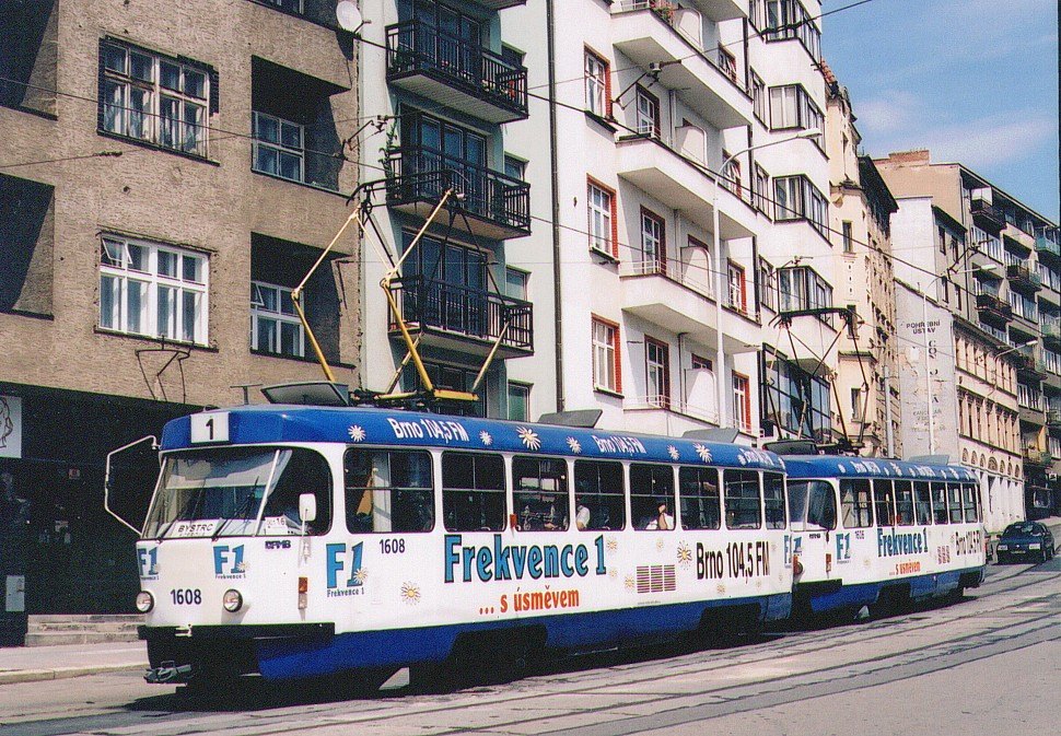 Fotografie ČKD Tatra T3G 1608 DPMB | ČKD Tatra T3G 1606 DPMB | Brno-Staré Brno, Pekařská | Fotogalerie BMHD